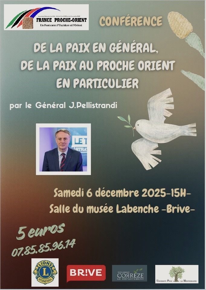 Conférence « De la Paix en Général et de la Paix au Proche-Orient en Particulier » Par le Général Jérôme PELLISTRANDI – Musée LABENCHE- 19100 Brive- France